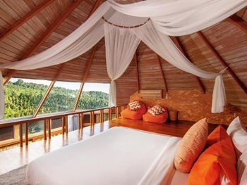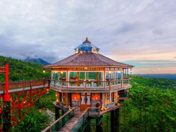 Нестандартность решения покачивающихся вилл с огромными панорамными окнами, красота окружающего ландшафта, безлюдье. Только Вы и природа. Доброжелательный персонал. Качественный массаж в СПА-салоне. Готовят тоже вкусно. Были в низкий сезон, даже ливни после полудня не испортили впечатления от отдыха. (Только прихватите с собой что-нибудь из тёплой одежды - всё же отель в горах.)