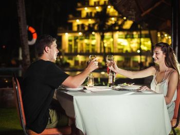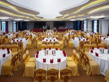 На территории отеля работает ресторан, в котором подают деликатесы местной и западной кухни. Также к услугам гостей помещения для проведения совещаний и банкетов.