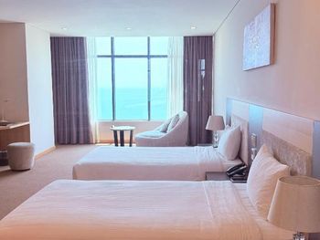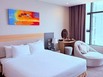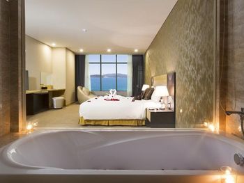 Отличное расположение - центр, первая линия. Есть свои зонтики на пляже. Красивый вид на всю набережную и остров vinpearl. Отличный завтрак - полное разнообразие от супов, второго до фруктов. Номер большой - что то около 40 метров.
