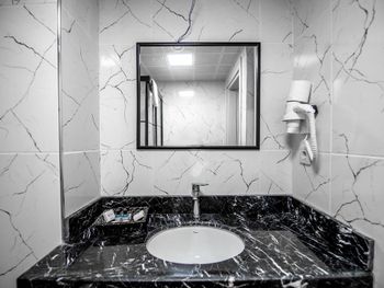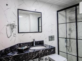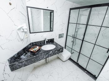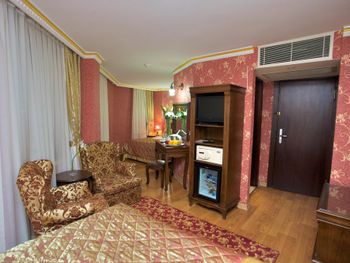 Старый, запущенный номер, из всех лампочек горели только две. В номере было накурено и пахло канализацией. На завтрак вместо кофе была вода, горячее принесли с большим опозданием, а не к началу завтрака. Всё плохо, никому не рекомендую этот отель.