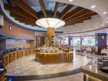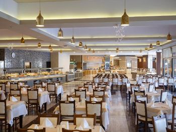 Персонал старается, все вежливо. Везде чисто. Все быстро убирается, несмотря на то что 3 корпуса отеля битком. Лежаков всем хватает. Питание отменное, как будто попала в старые добрые времена. И шашлыки и рыба и печень на гриле. Везде кормят весь день, прекрасные гозлеме, лахмаджун, бургеры. Нормальный алкоголь. Есть даже кофейня с хорошим кофе. Хороший СПА центр с бассейном. Быстрый интернет.