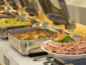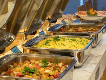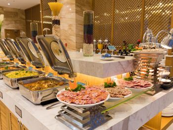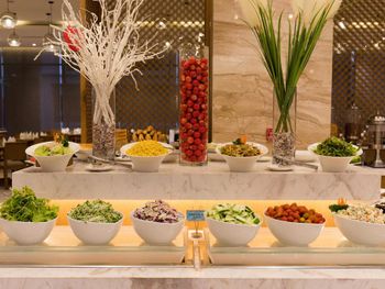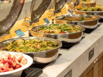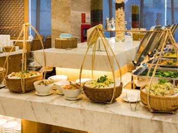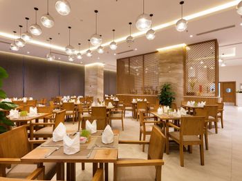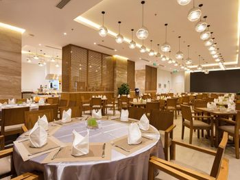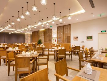 По утрам сервируется завтрак «шведский стол», а также американский или азиатский завтрак. В ресторане предлагают широкий выбор блюд интернациональной кухни, также гости могут заказать блюда аутентичной местной кухни.