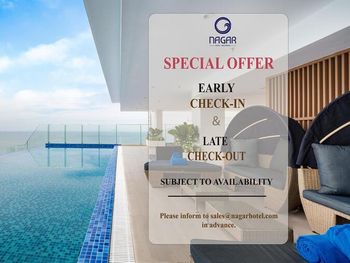 Отличный отель. Стандартные вкусные завтраки - есть все. 5 видов фруктов каждый каждый день. Еда люба европейская, азиатская. Бассейн на крыше. Вид прикольный. Есть свои лежаки на пляже. Берешь на ресепшене полотенца и топаешь на пляж. Один минус, на пляже нет никаких обозначений что это лежаки отеля NAGAR, но несколько раз спросив местных в итоге находишь. Можно было бы поставить табличку. По факту метров через что от лежаков отеля ситадинес в сторону лотоса. Поэтому выходя из отеля лучше поворачивать на право к отелю ситадинес и дальше по курсу. Отдельное спасибо персоналу ресепшена работавшего с 08-11 января 2025 г. Очень отзывчивые и душевные, решали все вопросы по необходимости. Отличный отель.
