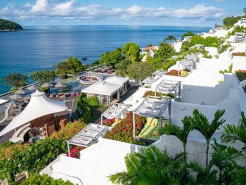 Во время дождя ужасный грохот в ванной, ночью особо не приятно. Там вместо потолков сотовый поликарбонат и представьте как по нему колотит ливень. В номере во время дождя капала вода с потолка. Бассейн грязный, листья и всё в нём. Месторасположение и вид на море шикарнейшие, персонал вежливый. Во время волны пляж очень грязный, в воду не пускают спасатели. После чего уехали на Ката, купались с удовольствием. В общем, расположение и вид превосходные. Сам отель не понравился
