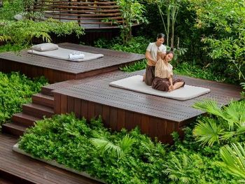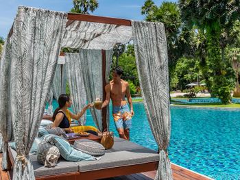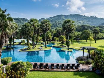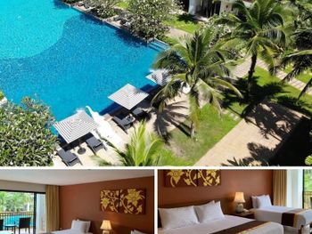 На завтраке был большой выбор блюд, все было вкусно, по сравнению с отелями Самуи выбора гораздо больше, хотя сами отели на Самуи раза в 3-4 были меньше. Заказывали обед в отеле, очень вкусные блюда были и порции большие. Территория огромная, все красиво. Рядом фруктовые лавки, продают еду с лотков, есть магазины и кафе. Массаж сделали в соседнем салоне очень качественный, что очень удивило в несезон!