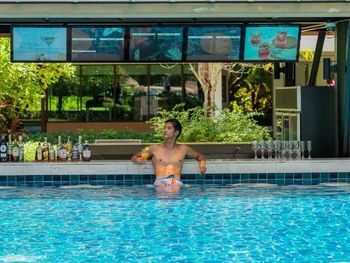 В бассейне можно купаться сколько угодно, до позднего вечера.