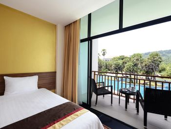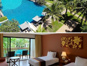 Удивительная история - отличная бухта в Таиланде, но при этом вся занята одним отелем. А отель не сказать, что совсем плохой, но очень какой-то турецкий (может потому, что хозяин турок). Территория очень красивая, а номера очень б.у. Кондиционер работает, как турбогенератор - спать с ним невозможно. Спасибо, что на севере Пхукета чуть прохладнее чем на юге и спать можно просто с открытым окном. Сантехника старенькая - вроде все работает более-менее, но при этом в номере присутствует запах канализации. Ресторан в отеле невкусный, вся бухта заполнена макашницами, на которых готовят различные тайские блюда. Не сказать, что на 5 баллов, но при таких копеечных ценах русские туристы предпочитают покупать обеды и ужины и с кучей одноразовых контейнеров есть это все на территории отеля. Не знаю, хорошо это или плохо, но напоминает кемпинг - мне кажется, что в уважающем себя отеле это не принято.