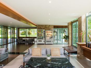 Есть рестораны за территорией, совсем рядом продают фрукты, свежую рыбу на гриле. Есть обменник, аптеки, немного лавок, продуктовые магазинчики, прокат Байков.