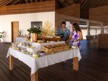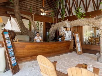 Замечательное месторасположение, живой риф, много рыб. Прекрасный вид на бесконечный океан, практически нет отелей поблизости. Не используют пластик и одноразовые шампуни и щетки. Мыло наливают в ёмкости. Персонал вежливый, доброжелательный. Трансфер организован хорошо, только не сказали, что будут ожидать у 56 стойки в аропорте, пришлось искать