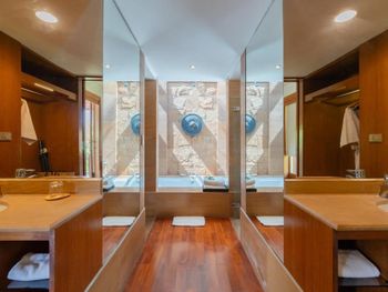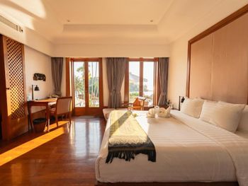 Отель очень старый и плохо содержится. Жили на вилле на втором этаже - старый, ужасный кондиционер, очень шумный, почти не регулируется. Из-за этого кондиционера сразу заболели. Жесткая кровать, неудобные подушки. В душе плохо уходит вода. Завтраки скудные, нет свежевыжатых соков (для пяти звезд в Тайланде это позор), три вида яиц всего. Кофе плохой. Были рады уехать.