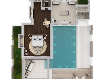 The island offers a unique holiday home-like feeling, underpinned by a utopia of seclusion that is created by private and tailored services. Each house comes with a private pool and is hidden away in pristinely kept vegetation, entwined with sandy paths that seem to wind endlessly, along with your imagination and dreams.