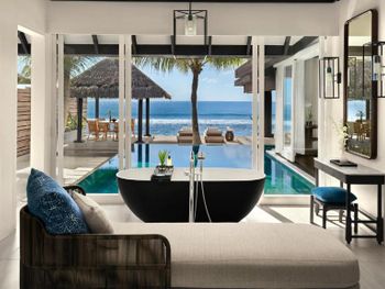Очень понравилась вилла с видом на океан , а именно вид на волны и бескрайний океан . Наличие парной комнаты на вилле приятно удивило . Прекрасный пляж и очень комфортное место для плавания . Сервис супер , все желания исполнялись .