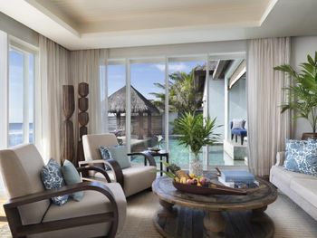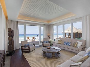 Из стильного ресторана The Living Room на пляже открывается вид на лагуну. В центре ресторана обустроен винный погреб со стеклянными перегородками и уникальными винтажными винами Старого и Нового Света.