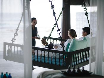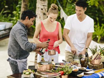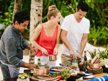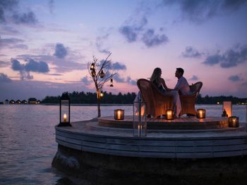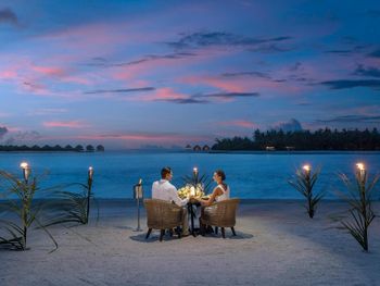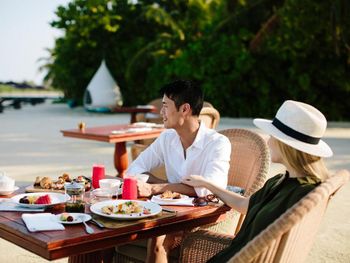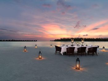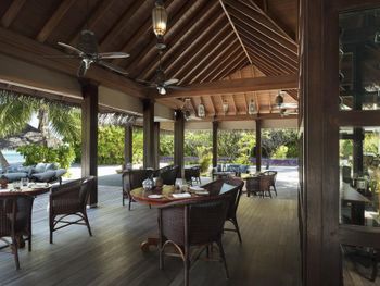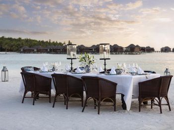 Этот курортный отель связан понтонной переправой с отелями-партнерами Anantara Veli и Anantara Dhigu с многочисленными ресторанами, в том числе превосходным рестораном SEA.FIRE.SALT и рестораном Origami, где проходят театрализованные ужины и подают блюда в стиле тэппанъяки. Переправа на понтоне занимает 2–3 минуты. Помимо того, гости могут отпраздновать знаменательные события, заказав приватный ужин на открытом воздухе.