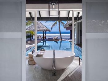 Очень понравилась вилла с видом на океан , а именно вид на волны и бескрайний океан . Наличие парной комнаты на вилле приятно удивило . Прекрасный пляж и очень комфортное место для плавания . Сервис супер , все желания исполнялись .