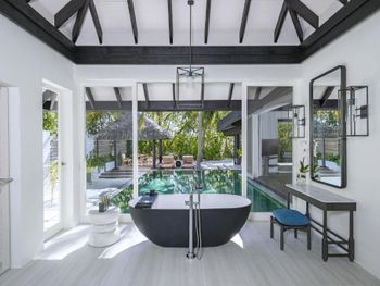 Благодаря индивидуальному подходу и персональному обслуживанию на острове царит уникальная атмосфера домашнего уюта и уединения. Каждый дом с собственным бассейном расположен в укромном месте, пробуждающем грезы, в окружении тропической растительности с бесконечными извилистыми песчаными дорожками.