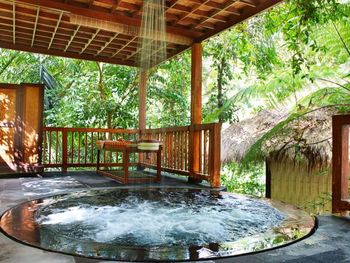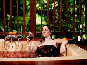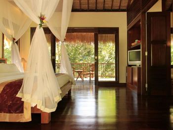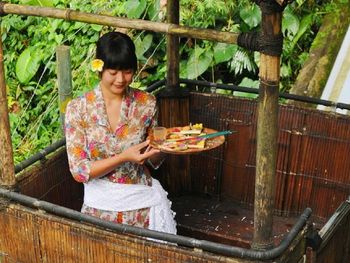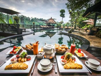 Wild Ginger Restaurant offers local, international and Indonesian dishes, prepared with fresh ingredients grown in the resort. Local and Asian tea are served at the open-air Warung Teh Lounge.