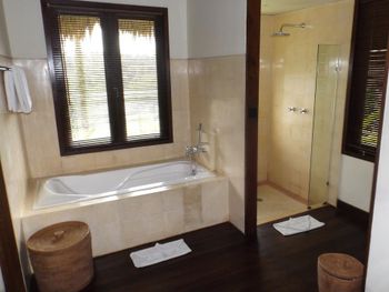 Шикарный вид с балкона собственной вилы и потрясающие звуки живых джунглей! Большая ванная комната с душем и ванной с лепестками цветов. Вкусный завтрак, много фруктов, интересные местные напитки. Бассейн с прохладной водой и собственный пирс у горной реки. В день заезда сделали комплимент - массаж ног. При выезде старший менеджер отеля, очень приятный человек, узнал наше мнение про отдых. Также предоставляется бесплатный трансфер в центр Убуда на микроавтобусе