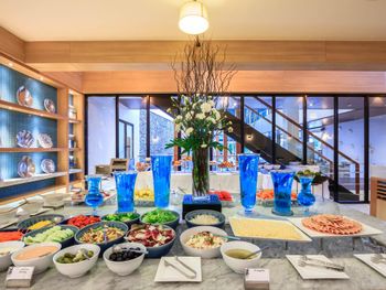 В баре «76» на крыше сервируется восхитительный завтрак «шведский стол». Кроме того, гостям подают легкие закуски и прохладительные напитки.