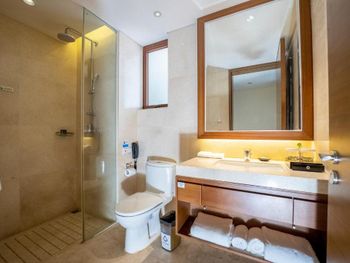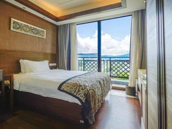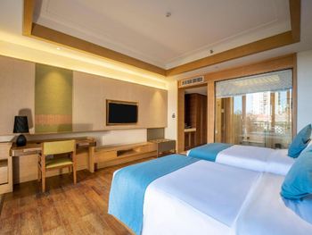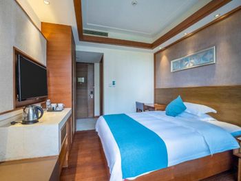 Выбирали этот отель так как он близко находится к аэропорту, заселились в 3 утра, но таксист не знал где находится отель, смотрел долго карту(советуем распечатать на китайском карту и наименование отеля), может это вам поможет. Заселили быстро в принципе, английский сотрудники не понимают, пользуются переводчиком. Жили в первую и в последнюю ночь. Первая ночь - выбрали большой номер с видом на море с завтраком, но проспали завтрак. Номер достаточно большой, вид был хороший, но есть разные балконы, на нашем балконе бетонный низ, то есть не видно море , если не встать, есть и другие балконы, если вам нужен вид, лучше выбрать такой. Купаться на пляже запрещены, но люди купаются, пляж через дорогу, красивая береговая линия. 2 ночь перед отлетом, который был в 6 утра, заселились в маленький номер, сотрудники предупредили, что вид на аэропорт, и слышно/видно как садятся самолеты, действительно оказалось шумно, если вы хотите поспать или достаточно долго проживать в этом отеле, лучше такой номер не выбирать. В этом номере вы провели буквально часов 8 и поехали в аэропорт. Утром в 3 утра сотрудники помогали вызвать такси в аэропорт, обошлась поездка в 50 юаней (сослались, что ночью сложно вызвать такси). Из аэропорта до отеля в 20-25 юаней.