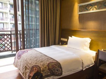 Хорошее расположение, вечером вечерний базар. 700 метров рынок с кафе, рядом тоже есть не большое кафе. Территория большая, ухоженная. Бассейн чистый, есть душ, туалет рядом в здании. Детская зона бассейна отделена от взрослой - замечательно, не слышно детей. Лежаков на бассейне мало. Полотенца дают. Пляж через дорогу, лежаков нет. За свои деньги хороший отель. Слышен шум аэропорта (самолетов), был номер на верхнем этаже. Но даже интересно понаблюдать за самолетами влздеткми и посадками. Завтрак китайски, но есть кофе машина, яйца, масло, фрукты, хлеб и другое. Голодные не будешь.