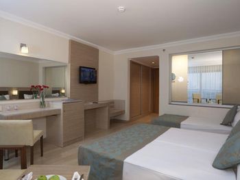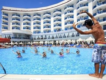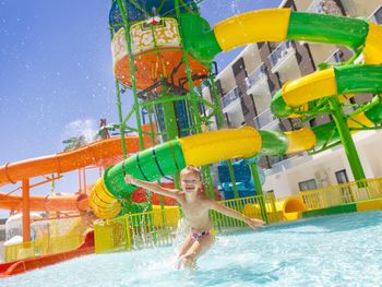Этот курортный отель расположен в 500 метрах от собственной пляжной зоны. К услугам гостей открытый и крытый бассейны, а также водные горки. Каждые 20 минут предоставляется бесплатный трансфер до пляжа. Гости могут посещать оздоровительный и спа-центр и пользоваться бесплатным Wi-Fi, который действует в местах общего пользования.