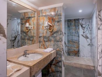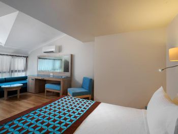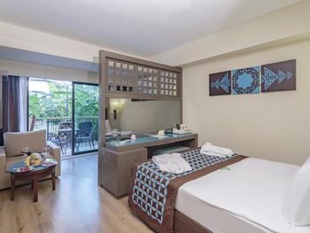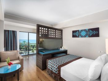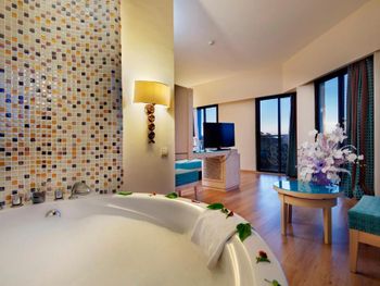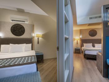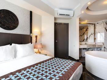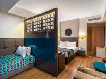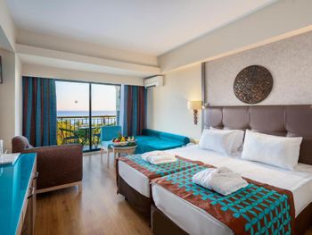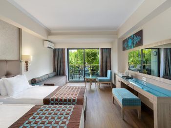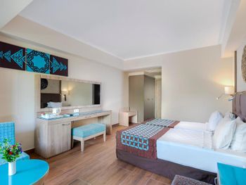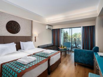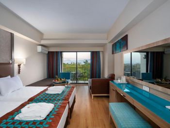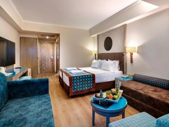 Номера курортного отеля Azura Deluxe & Aqua Sorgun со вкусом оформлены в традиционном сельджукском стиле в медных и бирюзовых тонах. Все просторные номера оснащены мини-баром и телевизором со светодиодной подсветкой. Из некоторых номеров открывается вид на море, бассейн, реку или лес.