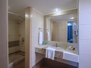 На этажах с номерами старый грязнейший ковролин. В номерах убирались отвратительно! Кажется, вся уборка сводилась к вытряхиванию мусора, заправке постели и смене полотенец. На полу грязь, берите тапочки! Сам номер пошарпан, душевая протекала. На улице каждый день (до 23.30) гремит музыка на вечернем шоу. Причем и в нашем, и соседнем отеле. Так что, если вы хотите отоспаться и спите чутко, вам это не удастся и бируши не помогут)) Возможно, в номерах с видом не на море, ситуация другая...