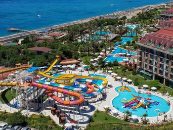 Курортный отель Azura Deluxe & Aqua Sorgun расположен на участке площадью 120 000 кв. м в районе Титрейенгол, на берегу моря, рядом с частным пляжем. Район отличается уникальным микроклиматом. Воздух здесь остается прохладным и свежим в любое время года. Кроме того, курорт относится к заповедной зоне, где водится более 100 видов птиц со всего мира, а также морские черепахи каретта и различные представители фауны Средиземного моря. К услугам гостей 22 открытых бассейна. На территории оборудованы два крытых бассейна — 1 взрослый и 1 детский. Аквапарк с 15 горками для детей и 12 горками для взрослых обеспечит гостям веселое времяпрепровождение. В детском клубе также имеются 2 горки.