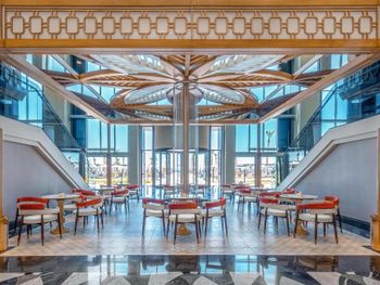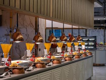 В главном ресторане сервируют завтрак, обед и ужин в формате «шведский стол». Гости могут заказать блюда турецкой и международной кухни в ресторане Sultan с обеденными зонами в помещении и на открытом воздухе. В ресторанах с обслуживанием по меню готовят блюда турецкой, мексиканской, османской и итальянской кухни, а также фирменные блюда из морепродуктов. Помимо этого, в отеле работает 7 различных баров, где можно заказать прохладительные напитки и закуски.