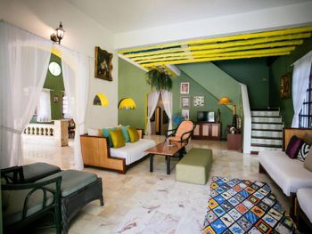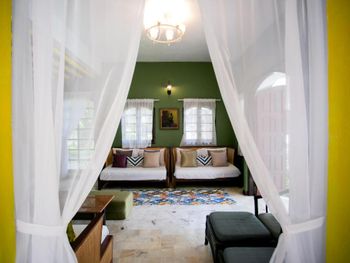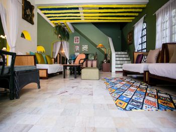Были двое взрослых, двое детей 7,11 лет. Брали номер Бунгало с 2 спальнями . Заявлено 100 м² . В реале. Две жилые комнаты на втором и третьем этаже 16 и 12 кв. метров, Есть ещё типа гостинной на первом этаже, диван, телевизор, кондиционер, и для проживания эта комната не подходит, равно как и для хранения вещей, нет шкафов и не закрывается. Остальной метраж типа из терассы на свежем воздухе на 1-ом этаже. На втором и третьем этаже, вход с открытого коридора. Были в ужесе, каждая комната закрывалась отдельно на ключ и , так как ключ на брелке, активизирующем присутствие в номере и включающий свет и .т.д. получалось, что дети от нас закрыты и мы от детей. Общего холла или коридора не было, просто лестница с улицы с терассы на 1-ом этаже. В итоге отсоеденили ключи и носили их отдельно, на ночь оставляя в скважинах обеих дверей снаружи. Из минусов ещё очень мало места для вещей и во всём отеле (проверяли) окна деревяннные и в ставнях большие щели, так что, не удавалось поспать в прохладе. Охлаждения хватало на тридцать минут, а спать при включённом, практически не регулируемом кондиционере, как то чревато простудой.