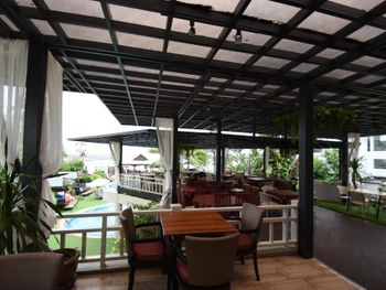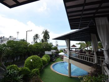 Отношение персонала - абсолютно тайское: вам будут улыбаться, но всеми способами гнуть свою линию или грабить. Отель стареет, но никто не желает вкладываться, основная задача - получить побольше денег. Завтраки экстремально минимальны: яичница из одного яйца, пара сосисок, тосты и фрукты (к ним вопросов нет) и кофе из пакетиков и юппи-соком из ведра. Содрали заоблачную цену за проживание собак, 10% за непонятное обслуживание, а при вынужденном отъезде (отмена рейса) отказались возвращать оплату. В отеле 5 (!!) сетей вай-фая, но при этом ни одна из них не работает в кафе, а в остальных местах сети постоянно переключаются и выкидывают из Интернета. Тайские домики, в одном из которых мы жили, весьма плотненько стоят и уже в очень плохом состоянии: прохудившийся и порою дырявый деревянный пол, прогнившие ступени лестницы, плесень и грибок в душе (это в не-влажный сезон), застиранное дырявое белье. Пляж напротив гостиницы закрыт на реконструкцию - в этом, конечно, отель не виноват, но при бронировании нас никто об этом не информировал - море от этого мутное и приходится идти до ближайшего пляжа. Нестрашно, но неприятно от постоянного ощущения обмана. Кафе отеля, судя по вывеске, должно работать до 23 часов, но реально к 20 уже обычно вымирало. И, внимание любителей собак: отель принимает с собаками, но взимает серьезные деньги за это; персонал в большинстве негативен к лучшим друзьям человека, а из-за истерики одной их менеджерш отеля, увидевшей собак постояльцев в столовой (собаки не бегали по столам, не клянчили еду, не лаяли, а спокойно лежали под столом) на стенах кафе появилось 4 (!) объявления о запрете пребывания ЛЮБЫХ животных в кафе. Притом, что бездомные собаки, которых в Паттайе много, свободно приходят в кафе и бегают по территории и даже лежат возле ресепшн. Не рекомендуем категорически это место, по крайней мере, при текущем его состоянии и менеджменте - ежедневно испорченное разнообразными способами настроение и переплата.