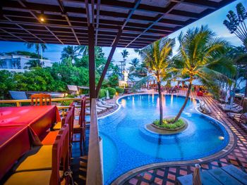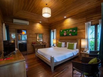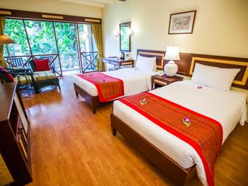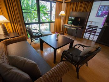 Хороший отель. Много зелени, приятный бассейн, разный номерной фонд.Имейте ввиду, что хлорирование бассейна проводят даже тогда, когда люди радостно в нем плещутся. Мы жили в тайском домике. Нам понравилось. Но шумоизоляция никакая! И сейф не работал. 3 часа персонал думал-решал что с этим делать. Закончилось все тем, что приволокли под мышкой маленькую штуковину, которую назвали сейфом. Водрузили ее на стационарный сейф. По тайски, но вопрос решили. Из неприятного-завтраки. Варьируются от очень средних, до сводящихся к яичнице и сосиске ( предугадать невозможно, меняется каждый день, наверное зависит от заезда). Массаж-ужас. Не ходите. Руки не моют, проминают плохо, хозяйка смотрит сериал со звуком, массажистки играют в карты. Как итог: никакого кайфа и все лицо в прыщах. Интернет все время отваливается, звонки не тянет.