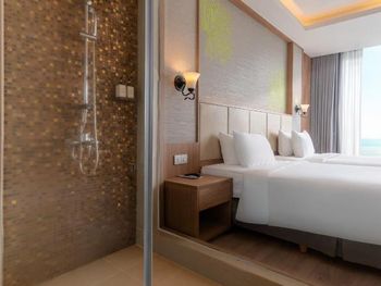 Очень хороший отель - понравился завтрак, очень удобная постель, мой номер был на 17 этаже, вид был оч хорошим, даже был мини балкон, было очень приятно смотреть за заливом. Вкусный разнообразный завтрак, конечно не хватало красной рыбы, но остальное было на высоте, большой настоящий выбор фруктов. Очень дружелюбный персонал, когда пришел тайфун ребята с ресепшен помогли найти варианты как выбраться из города не на самолете, в итоге я уехал на автобусе, если бы не ребята - потратил бы на этой уйму времени.