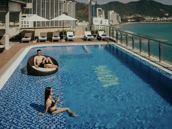 Navada Beach Hotel — это отель с 4 звездами на первой линии города Нячанг. В распоряжении гостей открытый бассейн, фитнес-центр и общий лаундж. К услугам гостей терраса, ресторан и бар. Гости могут обратиться к сотрудникам круглосуточной стойки регистрации, воспользоваться трансфером от/до аэропорта или доставкой еды и напитков, а также подключиться к бесплатному Wi-Fi.