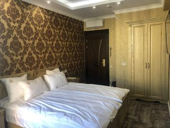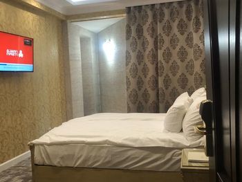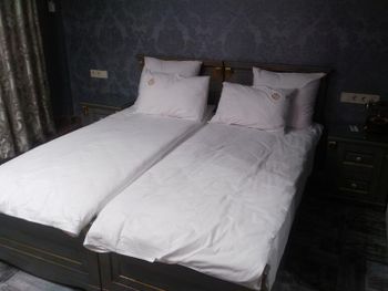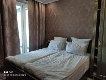 Imeyetsya raznoglasiya naswot fotok iz bookinga i s realnostyu. Vid iz okon ne tot kotoroy govoritsya na sayte booking . King size bed u nix eto dva otdelnix krovati prosto soedinonniye. Tak kak mi bili s maliwom , maliw provalivalsya mejdu matrasov.