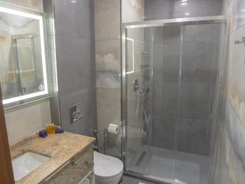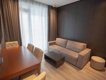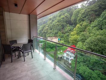 Очень хороший современный отель. Везде чисто,все улыбаются. Номера очень просторные,со всеми удобствами (жили в новом корпусе,6 этаж, вид на горы). Мебель,сантехника и др.практически новое,в хорошем состоянии.Стоянка охраняемая. Близость дороги не ощущаешь,тихо.