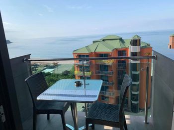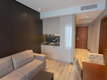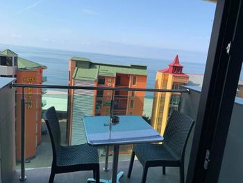 На балконах и в ресторане у моря можно курить, ресепшн всему только учится, не всегда оперативно реагирует, все вопросы для них новые, которые им приходится согласовывать с менеджером, кухонной утвари в апартаментах практически нет, нет штопора и бокалов для вина, ресторан при отеле готовит не очень вкусно.