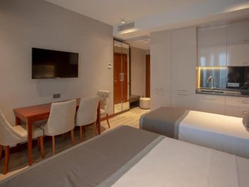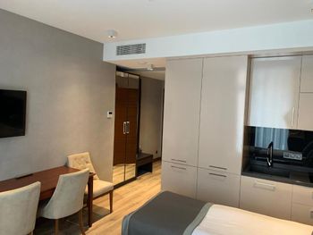 Шикарный подогреваемый бассейн, температура воды было 28 градусов и бассейн работал с 9:00 до 22:00. Номер двухкомнатный, для семей с детьми очень удобно. На кухне есть всё необходимое. Холодильник большой. Мощный фен.