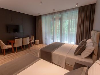 Новый отель с комфортной мебелью и ванными комнатами, идеально работает система кондиционирования, расположен у самого моря, очень качественная уборка в номере, мы арендовали автомобиль поэтому нам было удобно добираться до Батуми на машине, бассейн с подогревом воды, что хорошо в ненастный день, рядом с отелем находится несколько кафе, пляж чистый, широкий, предлагаются лежаки по 5 лар, до бетонной набережной от отеля 300 метров, по которой можно гулять вдоль моря. Выдают пляжные полотенца ежедневно.