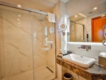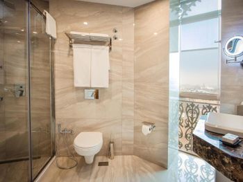 Современный высокотехнологичный отель, неплохая входная группа и лобби. Панорамный ресторан оставил приятные впечатления, цены средние Месторасположение удачное, правда, как сказали мне местные, находится в арабском квартале. Это косвенно подтверждалось и наличием большого количества арабов в самом отеле. Понравилось большое количество туалетных принадлежностей, которые каждый день пополнялись. Вода, кофе, чай в номере также пополнялись каждый день.