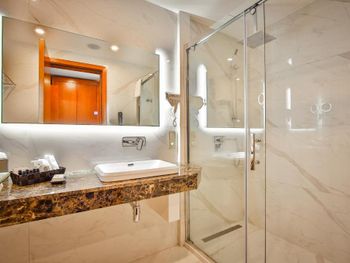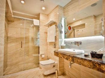 Большой удобный душ. Отличный вид из ресторана. Завтраки хорошие: с большим выбором на шведском столе (главное, не приходить на завтрак под закрытие). Удобное расположение отеля рядом с метро (в центре города.