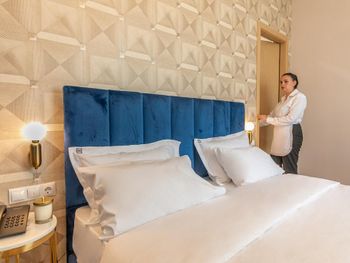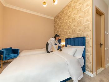 Очень чисто и приятно в отеле, приветливый персонал, мягкая и уютная кровать, чистейшая постель и полотенца. Очень приятно отдохнули. Уборка была каждый день. Идеально чисто. По запросу принесли второе одеяло.