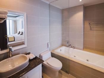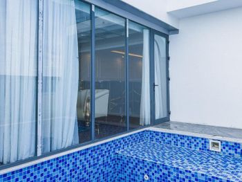 При заселении в номере не работал кондиционер, при включении из него шел запах выхлопа, словно от грузовика. Персонал быстро отозвался, перезагрузили систему кондиционирования и запах быстро ушел. В номере не окрываются окна (только маленькое в ванной), нет балкона, поэтому сложно сушить купальник. Из душа вода выливается на пол ванной (прямо льется во всю комнату и долго потом уходит). Об этом пишут все и это 100% правда. На завтраки не ходила, оценить не могу. На крыше есть бар. Персонал там очень неторопливый, а цены выше среднего. В отеле очень много русских и китайских туристов.