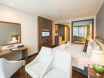 Потрясающий вид из окна, номер полулюкс был огромным. Персонал был готов помочь 24/7. По запросу приносили посуду, регулировали кондиционер, вызывали такси.