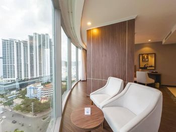 Потрясающий вид из окна, номер полулюкс был огромным. Персонал был готов помочь 24/7. По запросу приносили посуду, регулировали кондиционер, вызывали такси.
