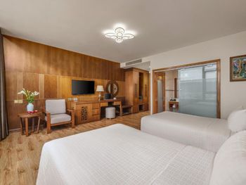 Стары отель, душно в номере на 17 этаже, брали на 7 ночей, съехали спустя ночь. Стали плохо из-за духоты, старый кондиционер, мебель старая, неприятно. Еда невкусная на завтраках. Опасный забор в коридоре для маленьких бегающих детей