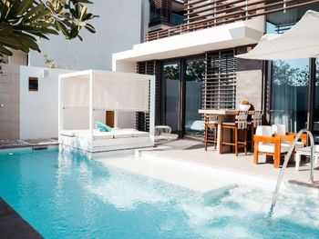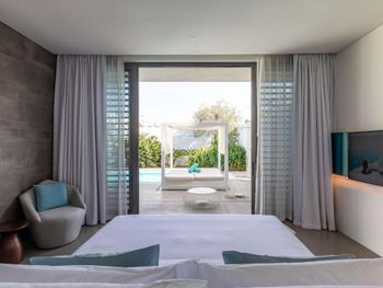 Стильные и красивые номера. Прекрасный дизайн отеля. Большой чистый пляж и открытое море.