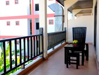 В отеле есть определенные нюансы. Хорошие номера только в одном корпусе, где нет ресторана на 1 этаже. Видимо там был ремонт. Если вы берете номер с видом " на окружающую местность", то вы рискуете получить вид на стену соседнего отеля в 3х метрах от балкона, либо тайскую кафе под окнами, где пол ночи будет звенеть посуда, разговаривать люди и играть музыка, не громко, но слышно. Вид из окна прилагаю. Шумоизоляция плохая. Из коридора все слышно. Работники отеля в 8 утра очень бодро разговаривают в коридоре: по рации и друг с другом. В ванной водоотвод организован так, что с дальнего борта ванной вся вода собирается и стекает на пол. Дорого, но на Патонге все дорого.