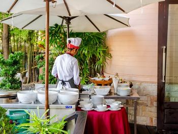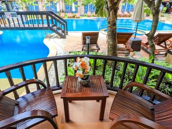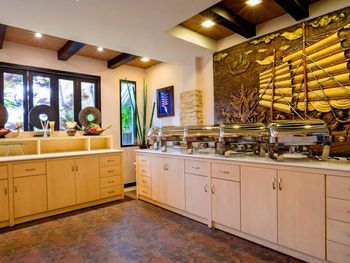 В ресторане подают блюда тайской и интернациональной кухни. Желающие могут заказать коктейли в баре и провести с ними время у бассейна.